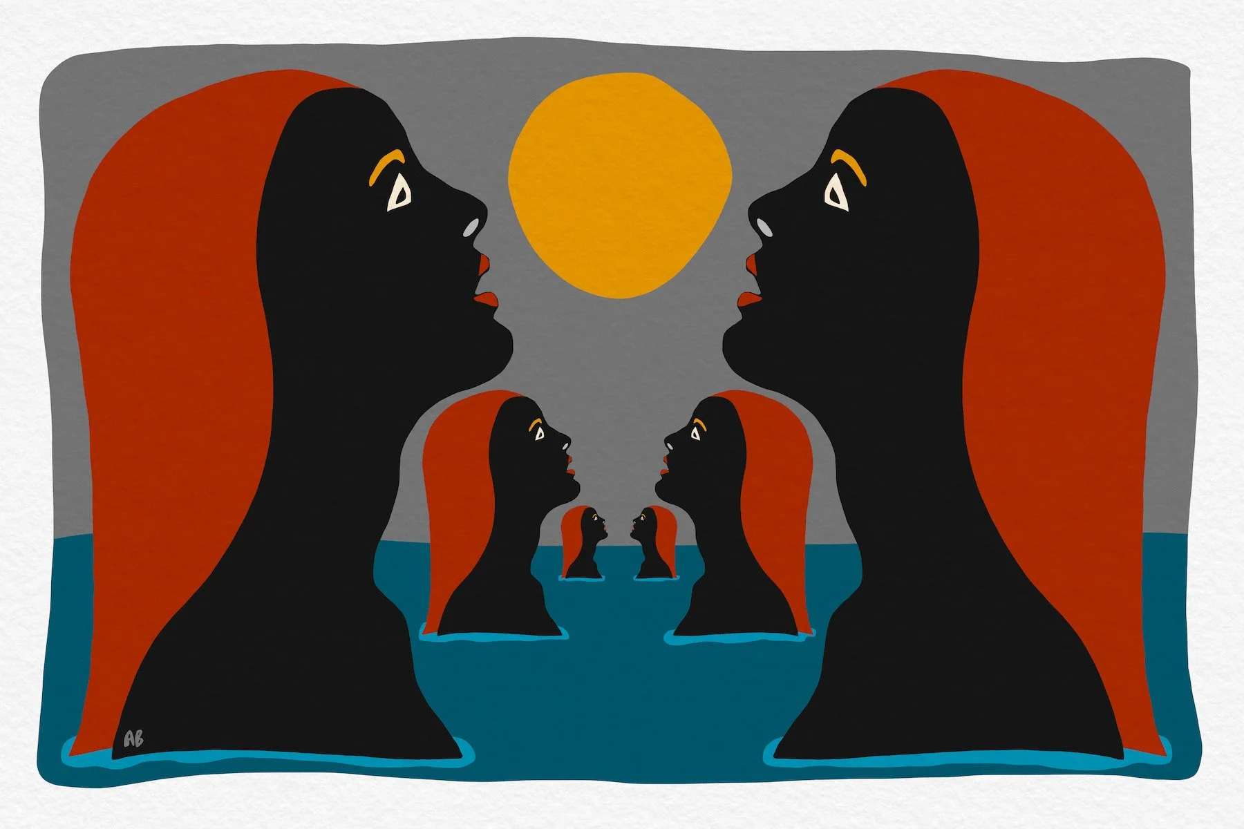 AB: I think that’s an apt description! My work is primarily in the realm of digital media and printmaking. My freehand digital drawings and pigment ink prints explore a lot of different and oft random topics. I’m generally drawn to a minimalist aesthetic, with much of my work intending to convey a thought, object, situational experience or emotion in the simplest and least cluttered way possible. A visual haiku maybe. But I also want to give the viewer boldness and color and depth, but again only enough information to express a meaning or feeling and to spark a sense of instantaneous relatable introspection, or just enough information for the viewer to fall down their own little contemplative rabbit hole.