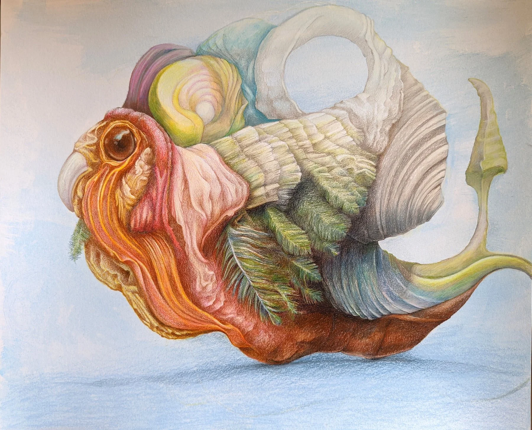 Specimen: TurkeySnail, 16” x 20”, watercolor and color pencils on Canson hot press paper