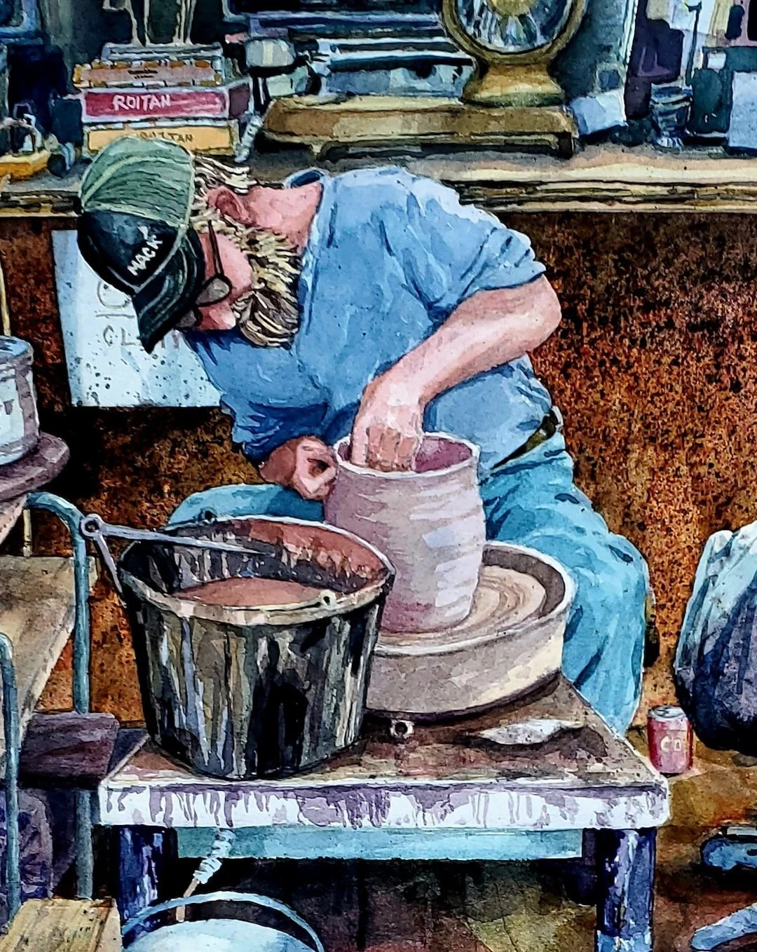 I was mesmerized by the whole experience inside this old cluttered general store that is on the historic register. He described his life and how he had quit his other jobs to sit and throw clay pots all day long, every day of the week. So, Mack is my story about the road not taken, but finally taken, and the potter that I call “Mack.”