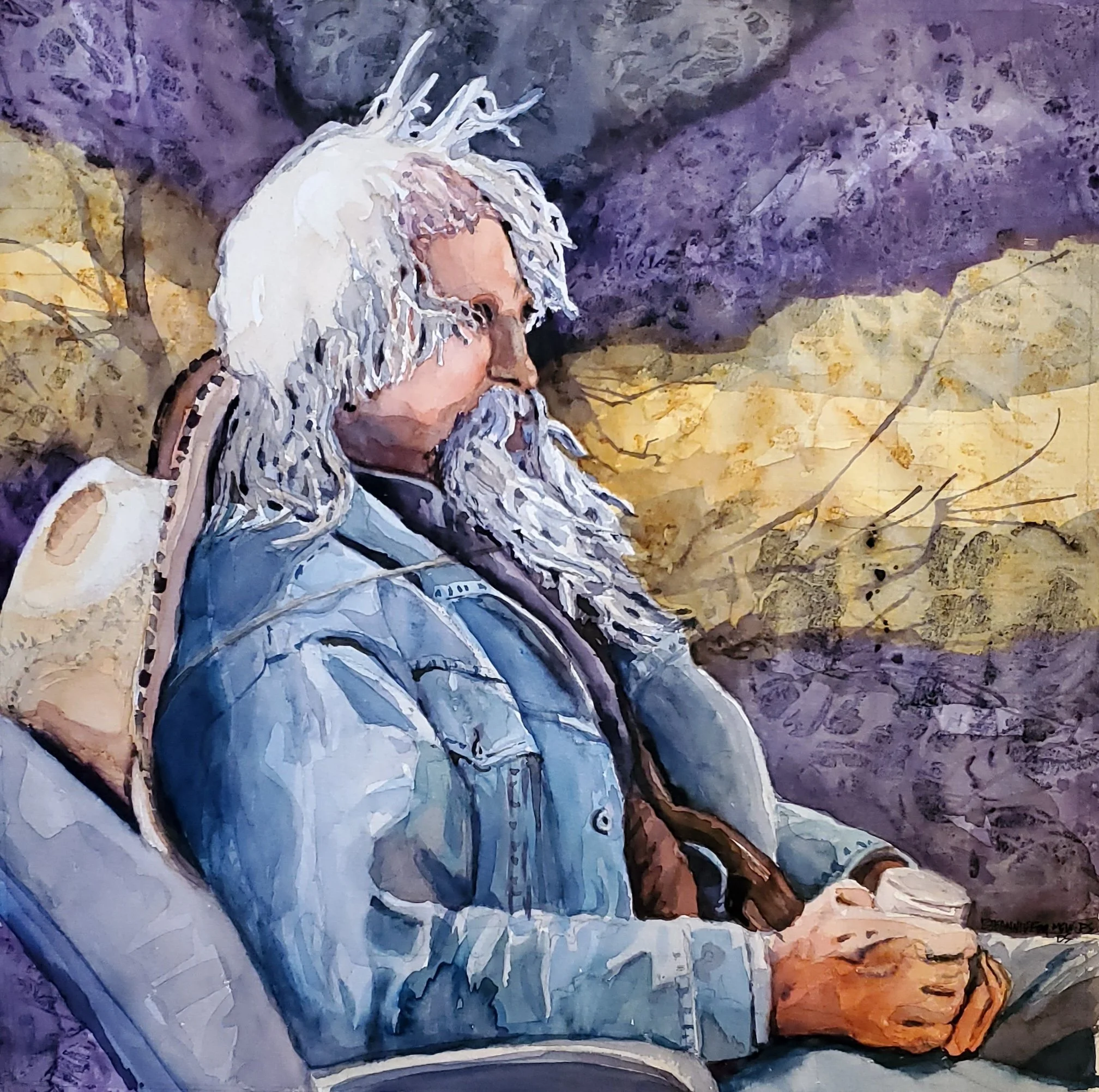 Cowboy, watercolor on paper, 16" x 16"
