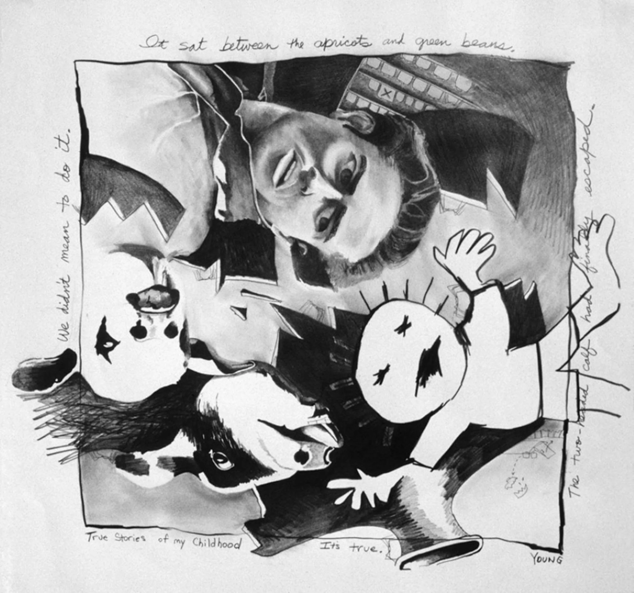 True Stories Of My Childhood: The Two-Headed Calf, graphite on paper, 32” x 32”