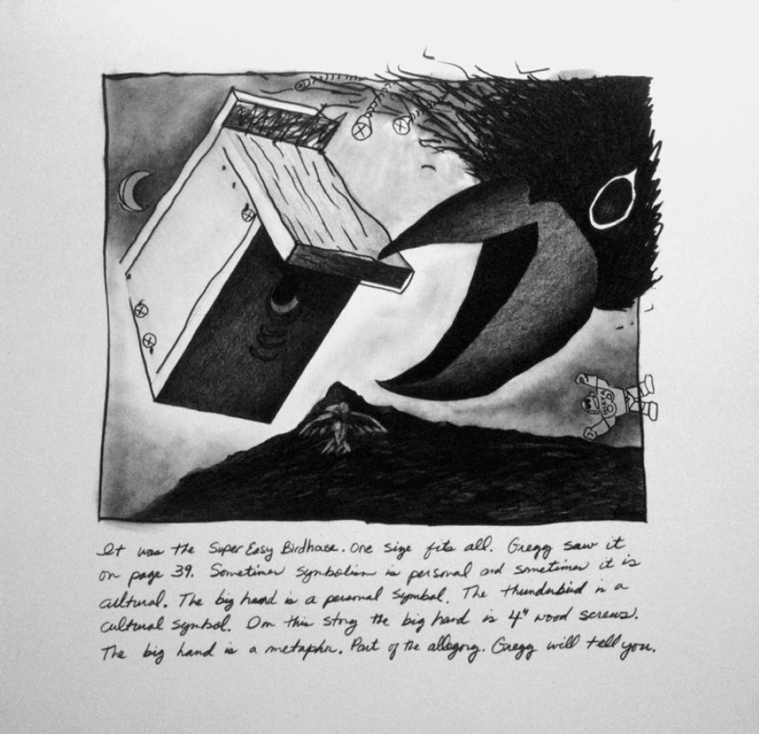 Anniversary: It Was The Super Easy Bird House, graphite on paper, 18” x 18”